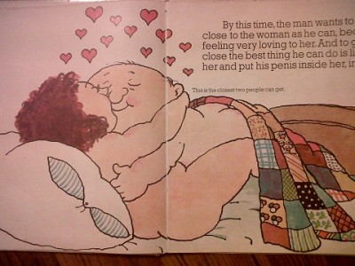 “By this time, the man wants to get as close to the woman as he can because he’s feeling very loving to her. And to get really close the best thing he can do is lie on top of her and put his penis inside her, into her vagina.” Fortunately for me, Mom wasn’t nearly so uptight about sex and human reproduction. She handed me this very handy dandy book.
